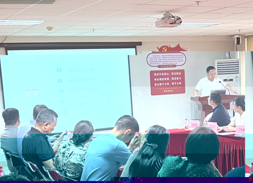教學質量監控與評估中心楊小元主任對各教學單位骨幹教師進行了合格評估畢業論文規範化管理工作培訓,楊小元主任在會中強調了學生畢業論文的重要性,詳細介紹了畢業論文的6個環節并分析了畢業論文管理上容易出現的問題,提醒教師論文審核的要點及常見問題,最後提出了後續工作建議與要求。