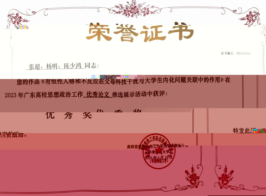 《有恒性人格和不反應在父母科技幹擾與大學生内化問題關聯中的作用》 |