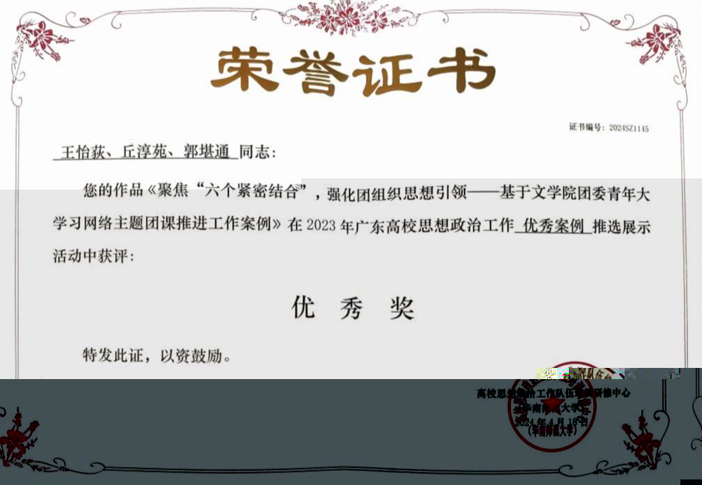 《聚焦“六個緊密結合”,強化團組織思想引領——基于文學院團委青年大學習網絡主題團課推進工作案例》 |