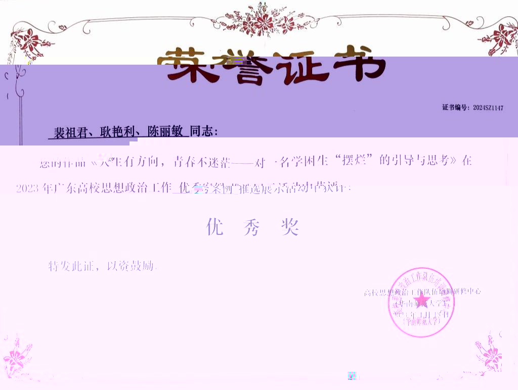 近日,2023年廣東高校思想政治工作優秀論文、優秀案例、教學視頻以及原創文化精品推選展示活動結果公布。我校推優報送的多項學工隊伍優秀作品在本次比賽中獲獎。其中,工作案例獲獎10篇、工作論文獲獎11篇、原創文化精品獲獎1首、教學視頻獲獎2部。