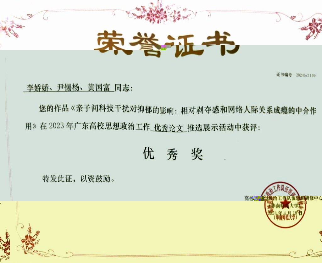 《親子間科技幹擾對抑郁的影響:相對剝奪感和網絡人際關系成瘾的中介作用》 |