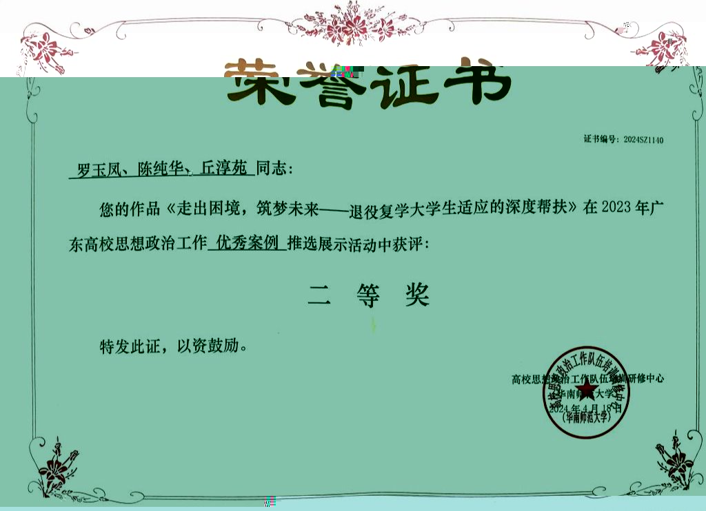 《走出困境,築夢未來——退役複學大學生适應的深度幫扶》 |