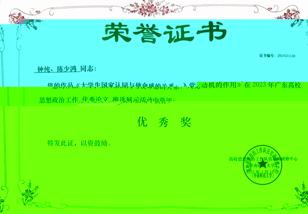 《大學生國家認同與使命感的關系:入黨動機的作用》 |