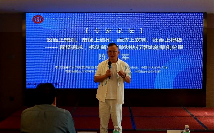 原江西省萍鄉市委宣傳部副部長、萍鄉市精神文明辦主任、中國十大公關人物、海南省農業廳特聘專家、海南東方市政府顧問、華商校外合作專家陳光軍先生,以“政治上策劃、市場上運作、經濟上獲利、社會上得福”為主題,分享他在需求導向下的創新創意策劃執行落地的案例。