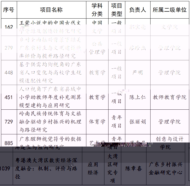 4月25日,廣東省社會科學界聯合會對廣東省哲學社會科學規劃2025年度常規項目、三類研究專項拟立項名單予以公示,共1109項予以公示,我校有7項位列其中,名單如下: