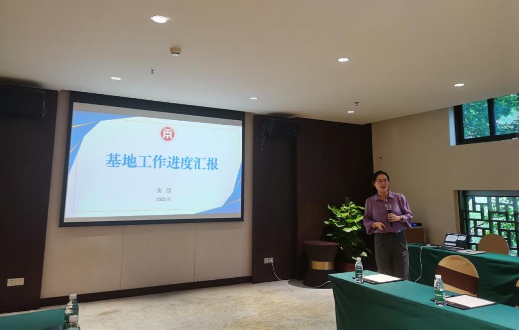 會議伊始,安潔博士從基地成立背景、基地建設情況及基地研究成果三個方面彙報基地目前的建設進展。