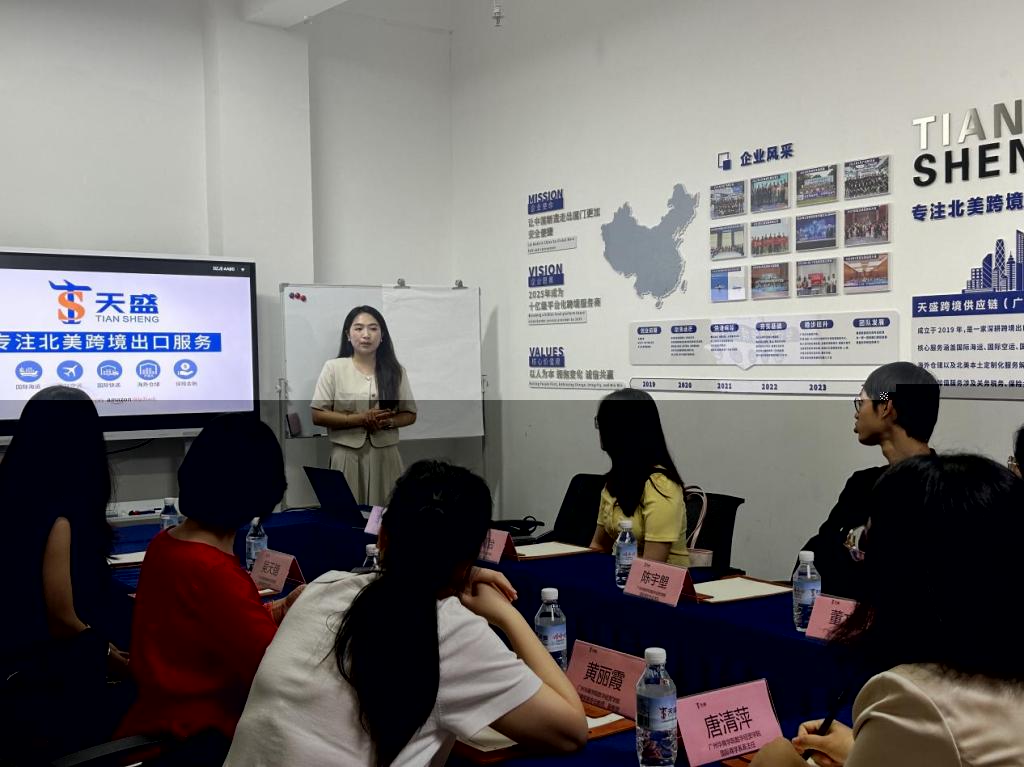 活動伊始,天盛人力資源主管給同學們介紹了天盛跨境公司概況。随後,國際貿易專業學生代表針對公司主營業務——國際貨運代理提出了看法和疑惑,天盛供應鍊業務骨幹一一給出了解答。國際商務專業同學則與天盛業務人員深入探讨了在美國關稅政策下跨境電商的運營情況以及未來的發展趨勢。