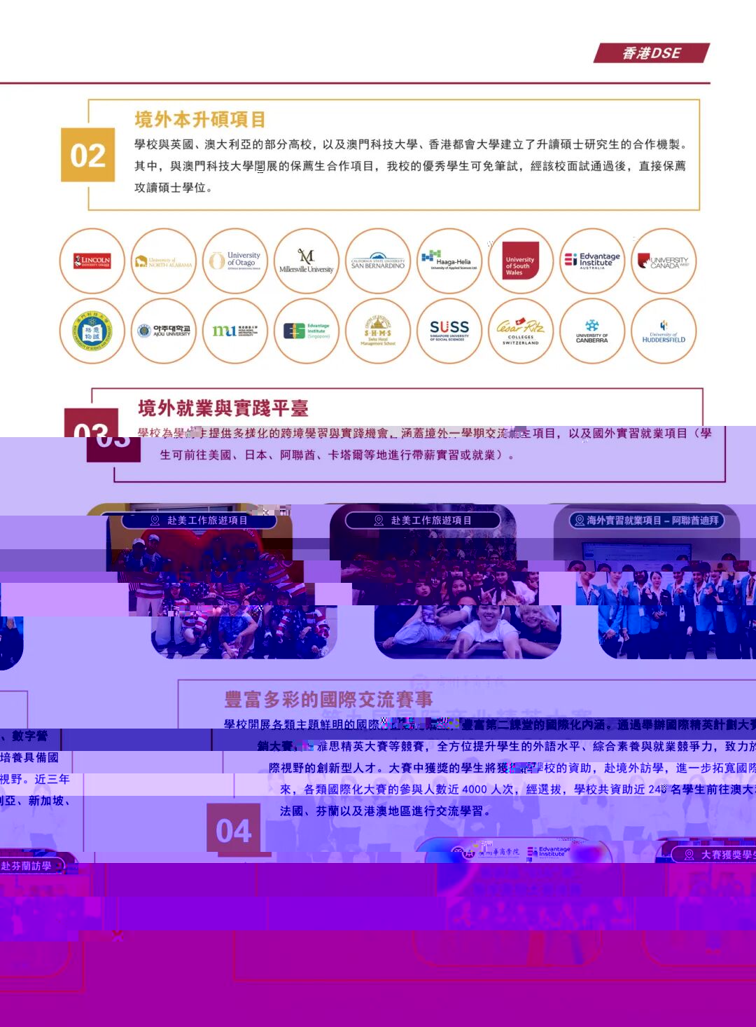 國際視野助力就業:創新國際化辦學模式,自2023年起推出“發現香港之美”等品牌研學活動,累計已組織1.4萬名師生赴境外開展交流與研習;開發國際化特色融合課程,旨在提高學生語言能力、綜合能力和就業能力,助力畢業生出海就業和高質量就業。